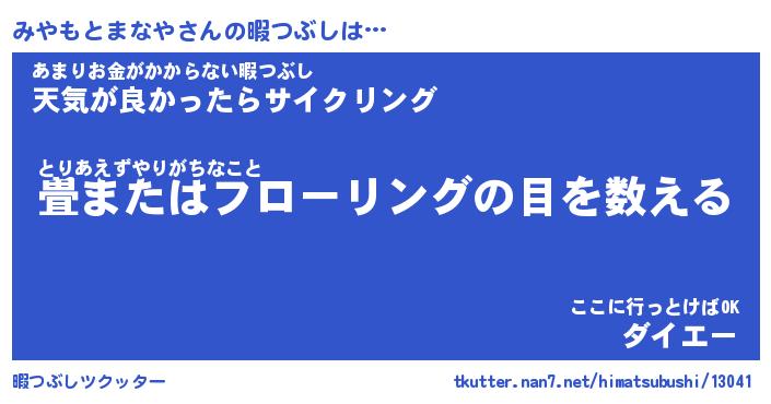 | ヘコむあだ名 | 『みやふぇ~』『なまこ酢』 |