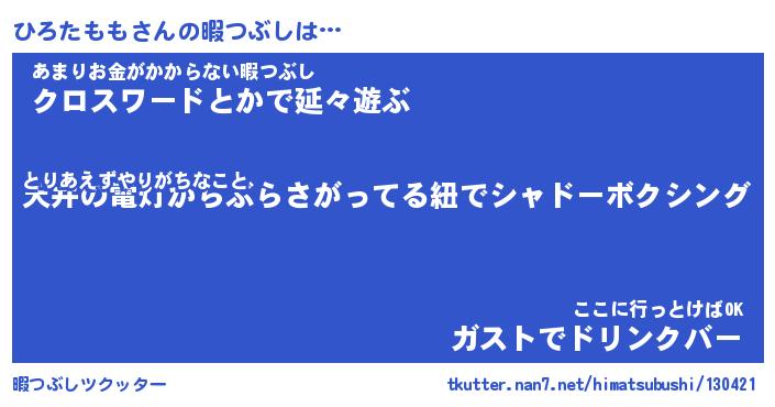 | ヒーロー風カッコイイあだ名 | 『スーパーヒロタモモ』『幻影騎士ヒロ』 |