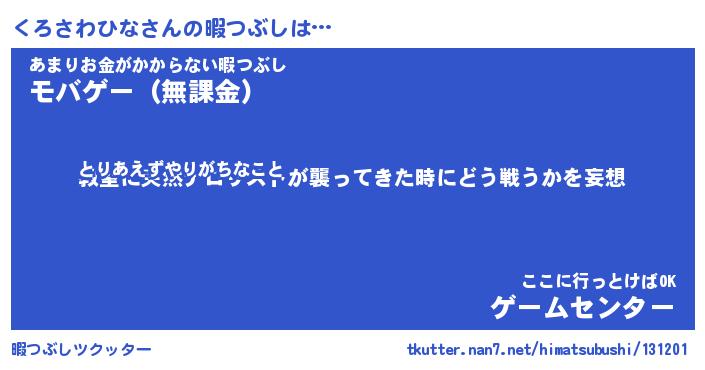 | ヒーロー風カッコイイあだ名 | 『スーパークロサワヒナ』『暗黒騎士クロ』 |