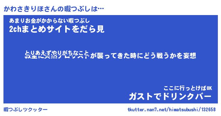 | ヒーロー風カッコイイあだ名 | 『スーパーカワサキリホ』『幻影騎士カワ』 |