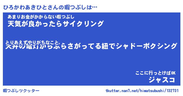 | 胡散臭い通販商品みたいなあだ名 | 『モテモテ間違いなし水晶球…その名も「ひろかわあきひと」』 |