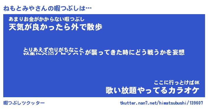 | ファンタジー風あだ名 | 『ネモフェル』『エターナルネモトミヤー』 |