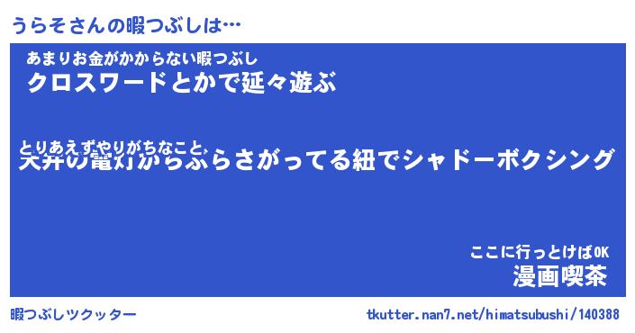 | ヒーロー風カッコイイあだ名 | 『スーパーウラソ』『ウルトラうらそマン』 |