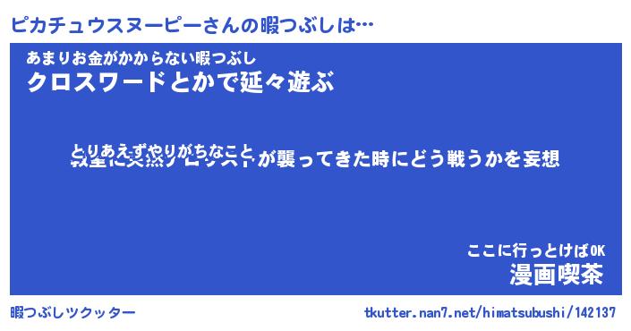 | 伝説のあだ名 | 『封印されしスナイパーピカチュウスヌーピー』 |