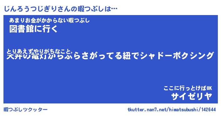 | 伝説のあだ名 | 『封印されしスナイパーじんろうつじぎり』 |