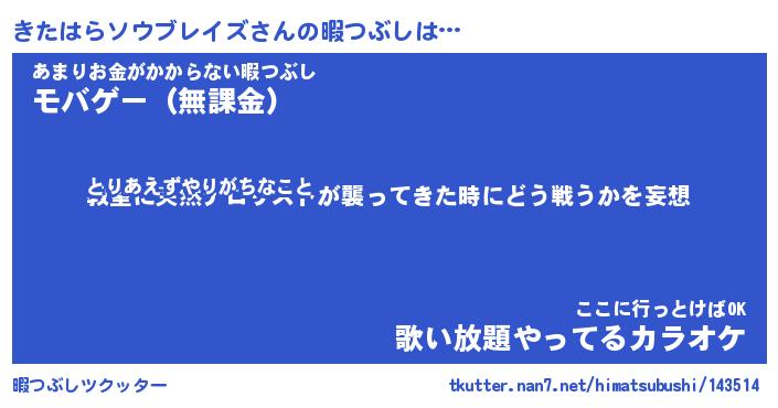 | 伝説のあだ名 | 『封印されし傭兵きたはらソウブレイズ』 |