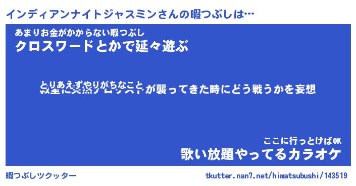 | 欧米人風あだ名 | 『マイケルインディアンナイトジャスミン』 |