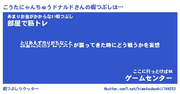 | 胡散臭い通販商品みたいなあだ名 | 『億万長者になれる水晶球…その名も「こうたにゃんちゅうドナルド」』 |