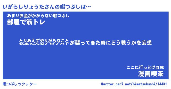 | 胡散臭い通販商品みたいなあだ名 | 『億万長者になれるブレスレット…その名も「いがらしりょうた」』 |