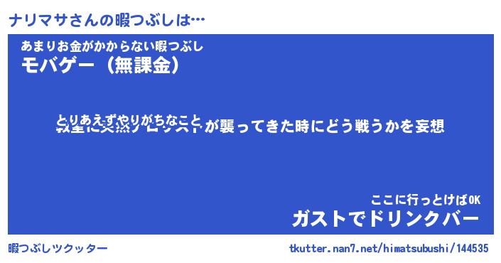 | ヒーロー風カッコイイあだ名 | 『スーパーナリマサ』『幻影騎士ナリ』 |