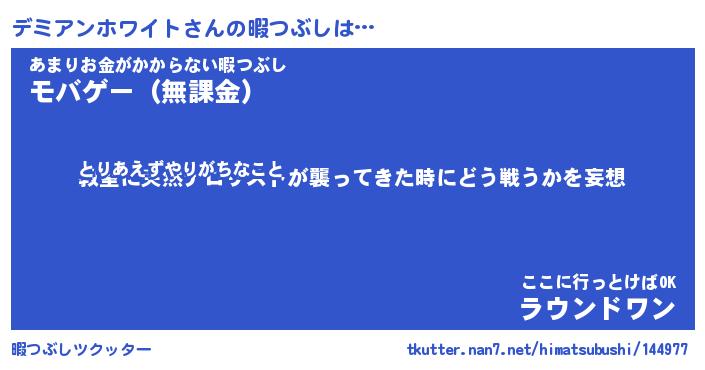 | 男性向けラノベタイトル風あだ名 | 『デミアンホワイトアートオンライン』 |