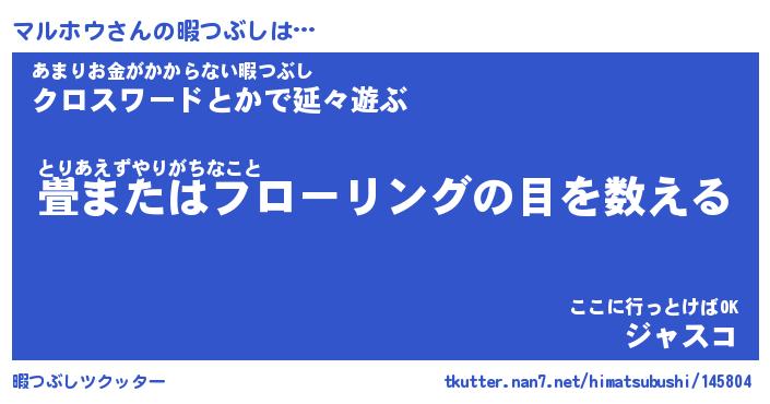 | 男性向けラノベタイトル風あだ名 | 『マルホウの憂鬱』 |