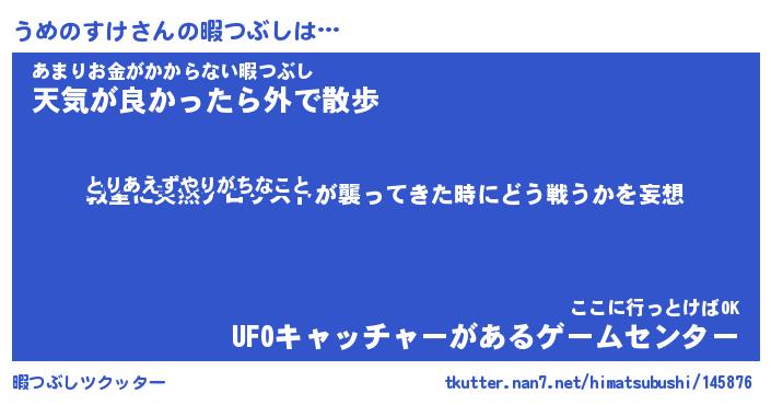 | 胡散臭い通販商品みたいなあだ名 | 『億万長者になれるブレスレット…その名も「うめのすけ」』 |
