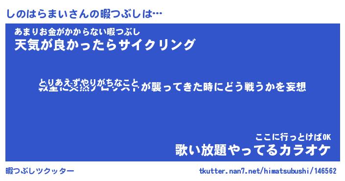 | ヒーロー風カッコイイあだ名 | 『スーパーシノハラマイ』『銀牙騎士シノ』 |
