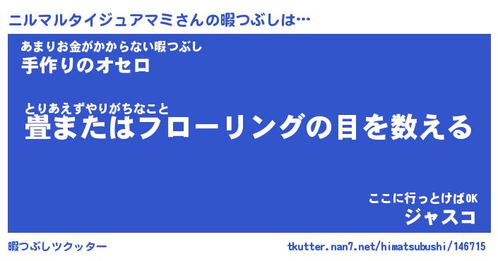 | 男性向けラノベタイトル風あだ名 | 『ニルマルタイジュアマミの憂鬱』 |