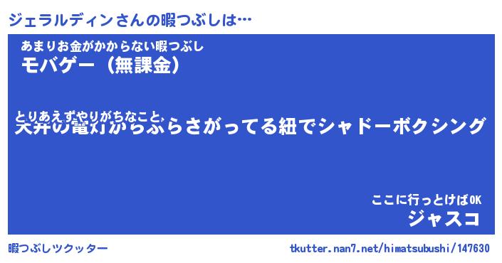 | 男性向けラノベタイトル風あだ名 | 『ジェラルディンアートオンライン』 |