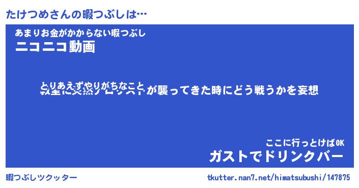 | ファンタジー風あだ名 | 『タケフェル』『エターナルタケツメー』 |