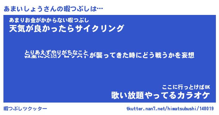 | 男性向けラノベタイトル風あだ名 | 『アマイショウアートオンライン』 |