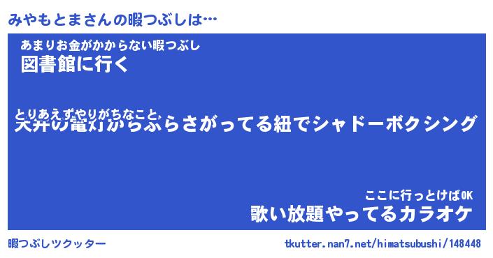 | 伝説のあだ名 | 『封印されしスナイパーみやもとま』 |