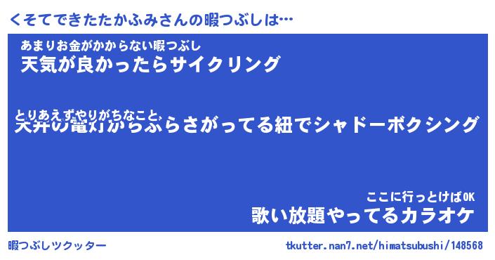 | 胡散臭い通販商品みたいなあだ名 | 『億万長者になれるブレスレット…その名も「くそてできたたかふみ」』 |