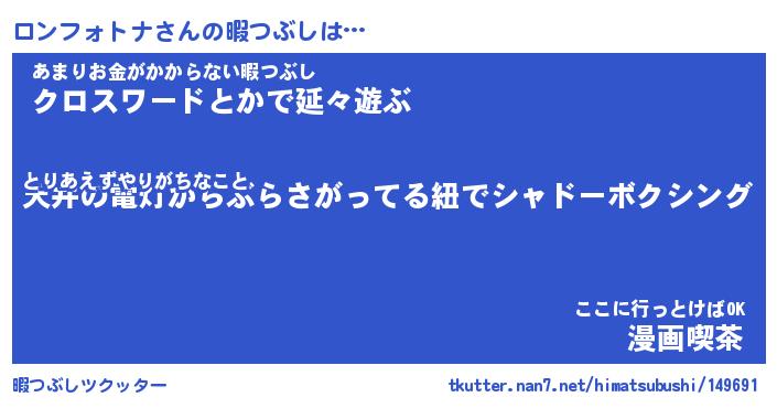| 伝説のあだ名 | 『封印されしスナイパーロンフォトナ』 |