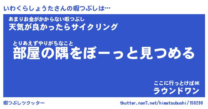 | 男性向けラノベタイトル風あだ名 | 『いわくらしょうたの憂鬱』 |