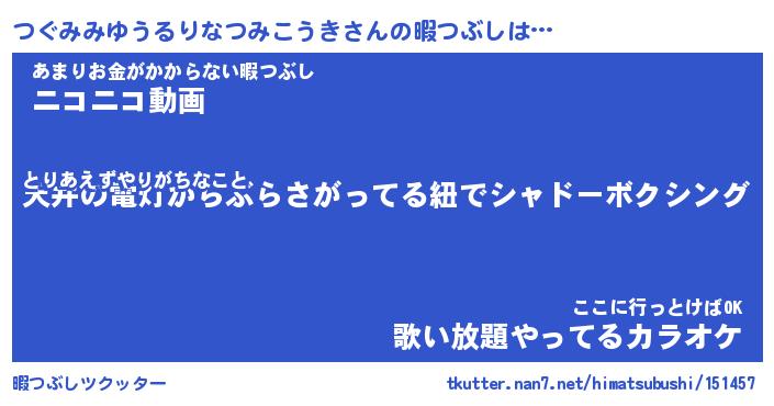 | 肩書あだ名 | 『つぐみみゆうるりなつみこうき社長』 |
