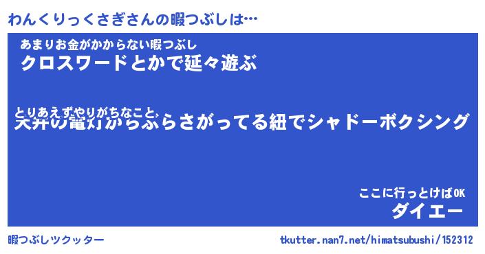 | 2回繰り返すあだ名 | 『わんわん』『わわんん』『かたかた』 |