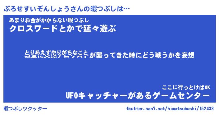 | 胡散臭い通販商品みたいなあだ名 | 『億万長者になれる水晶球…その名も「ぷろせすいぞんしょう」』 |