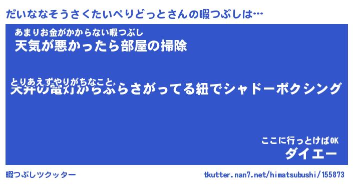 | 胡散臭い通販商品みたいなあだ名 | 『億万長者になれる霊験あらたかなお札…その名も「だいななそうさくたいぺりどっと」』 |
