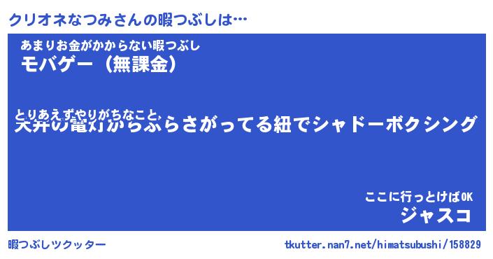 | 欧米人風あだ名 | 『マイケルクリオネなつみ』 |