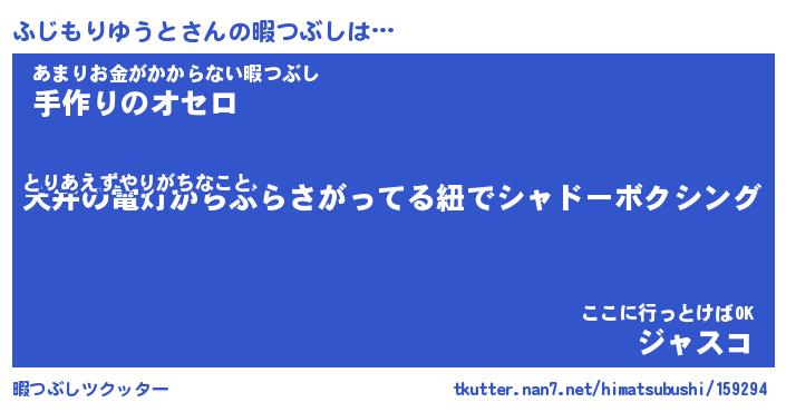 | 伝説のあだ名 | 『封印されしスナイパーふじもりゆうと』 |