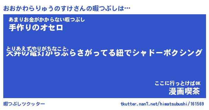 | 胡散臭い通販商品みたいなあだ名 | 『モテモテ間違いなし霊験あらたかなお札…その名も「おおかわらりゅうのすけ」』 |