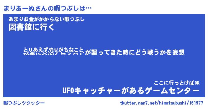 | 伝説のあだ名 | 『封印されしスナイパーまりあーぬ』 |