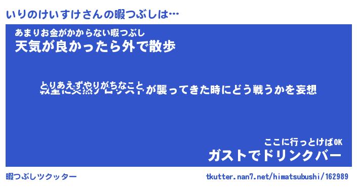 | ヒーロー風カッコイイあだ名 | 『スーパーイリノケイスケ』 |