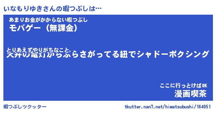| 男性向けラノベタイトル風あだ名 | 『イナモリユキアートオンライン』 |
