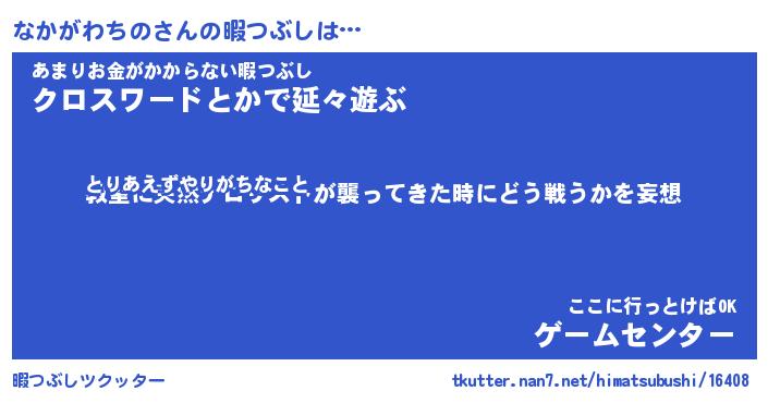 | 伝説のあだ名 | 『封印されしスナイパーなかがわちの』 |