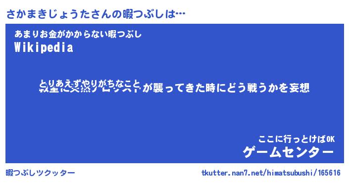 | 伝説のあだ名 | 『封印されしスナイパーさかまきじょうた』 |
