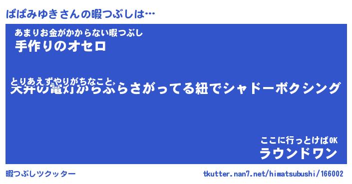 | 男性向けラノベタイトル風あだ名 | 『ババミユキアートオンライン』 |