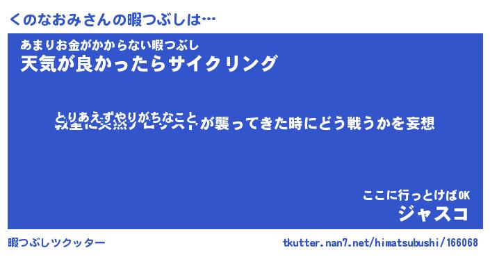 | ヘコむあだ名 | 『くのにー』『つくし』『くのっ子』 |