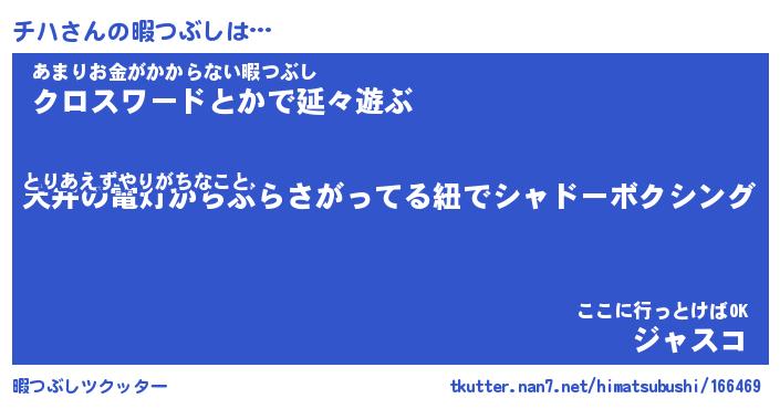 | ポケモン風あだ名 | 『チハチュウ』『チハダネ』『ヒチハ』 |