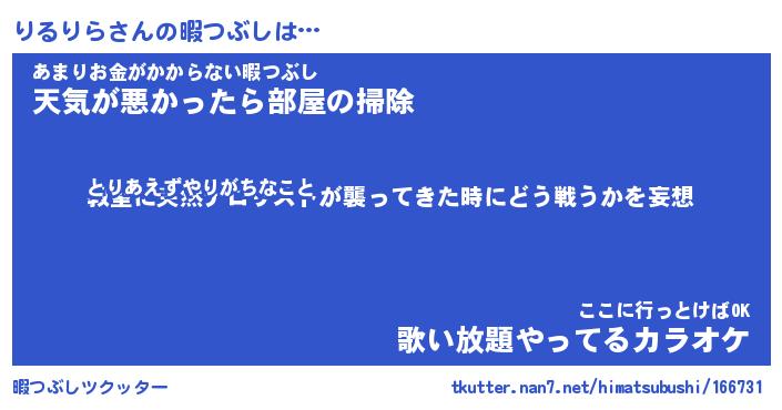 | 肩書あだ名 | 『りるりら店長』『りるりら総理大臣』 |