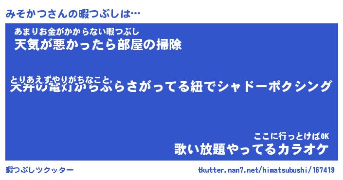 | ヘコむあだ名 | 『みそもー』『酢こんぶ』『みそを』 |