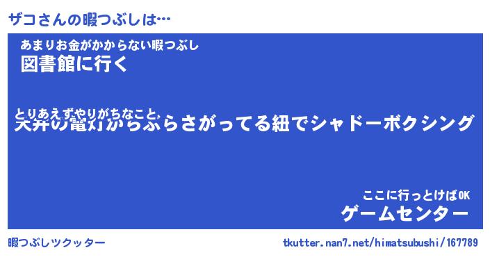 | 自動車の名前っぽいあだ名 | 『ザコティマ』『ザスラー』 |