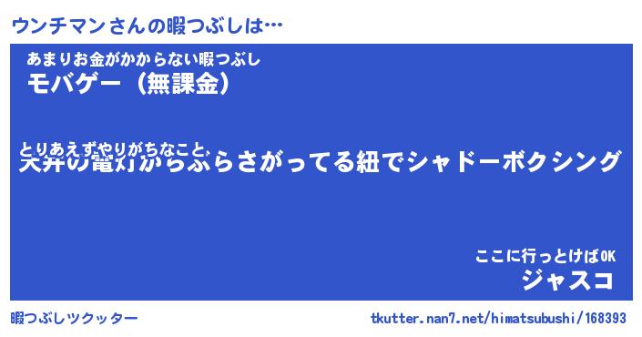 | ファンタジー風あだ名 | 『ウンフェル』『エターナルウンチマンー』 |