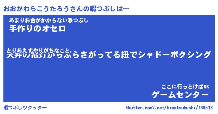 | ヒーロー風カッコイイあだ名 | 『スーパーオオカワラコウタロウ』 |