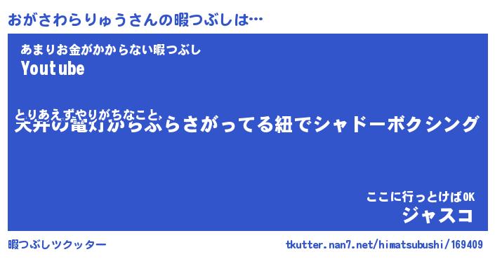 | 伝説のあだ名 | 『封印されしスナイパーおがさわらりゅう』 |