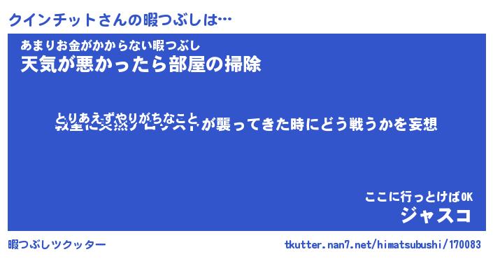 | ヒーロー風カッコイイあだ名 | 『スーパークインチット』『暗黒騎士クイ』 |