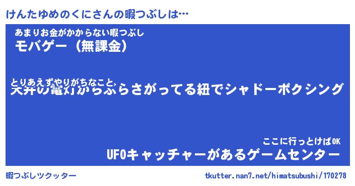 | ヘコむあだ名 | 『けんにー』『レバニラ』『けん太郎』 |