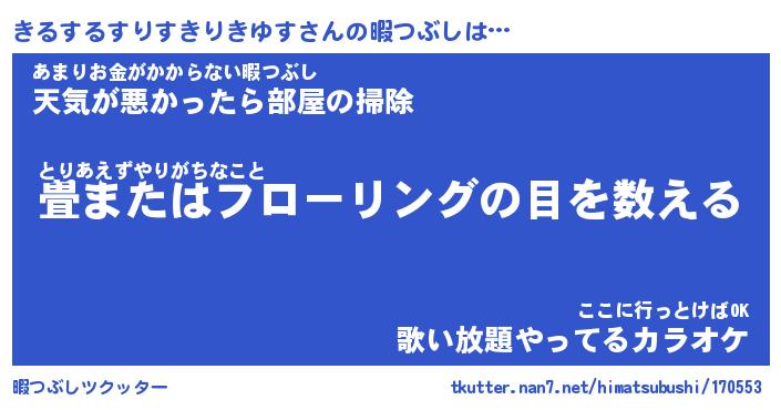 | 男性向けラノベタイトル風あだ名 | 『きるするすりすきりきゆすの憂鬱』 |